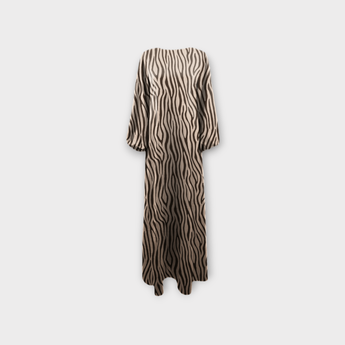 پیراهن بلند زبرا آستین پفی کرپ نخ قد 125cm سایز 32 تا 62
