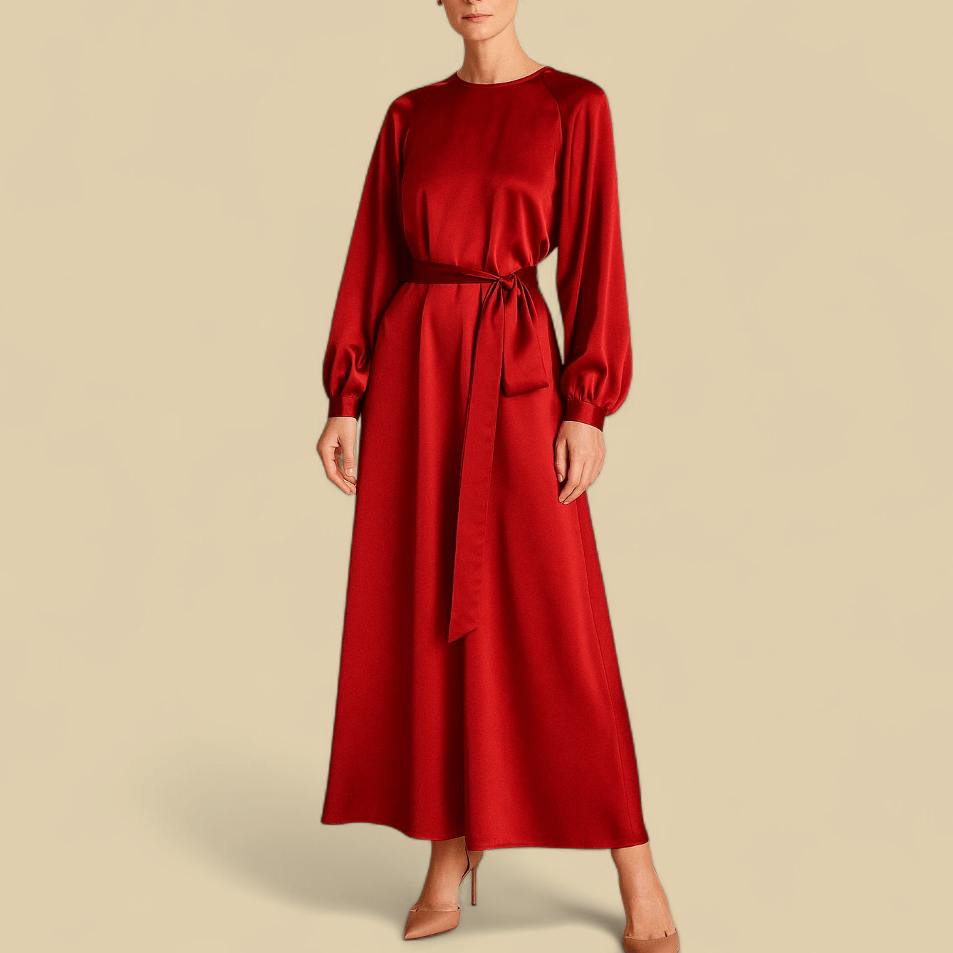 پیراهن مجلسی پوشیده ساتن قرمز