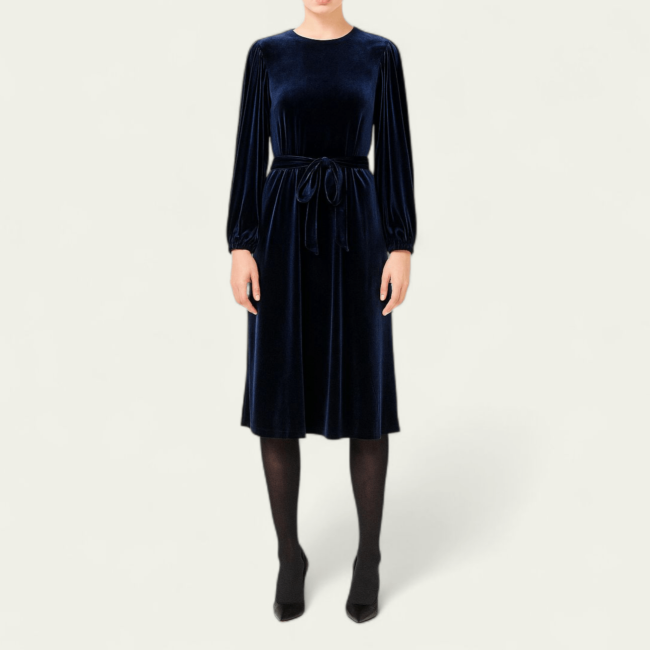پیراهن مخمل مجلسی کمربنددار آبی نفتی