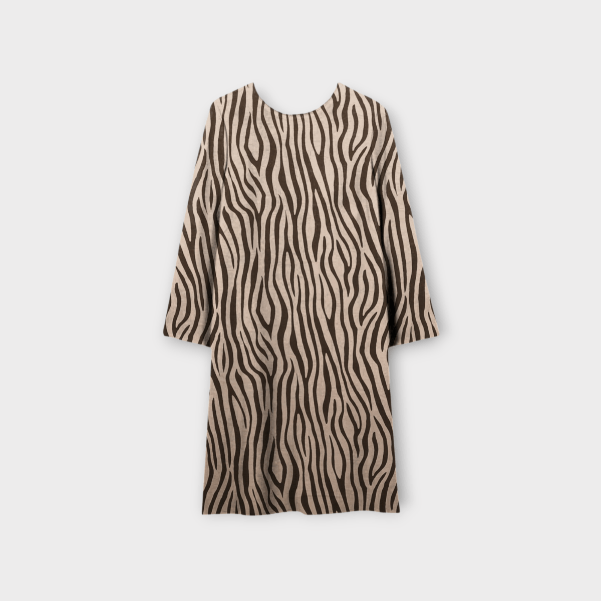 پیراهن میدی زبرا آستین بلند کرپ نخ قد 90cm