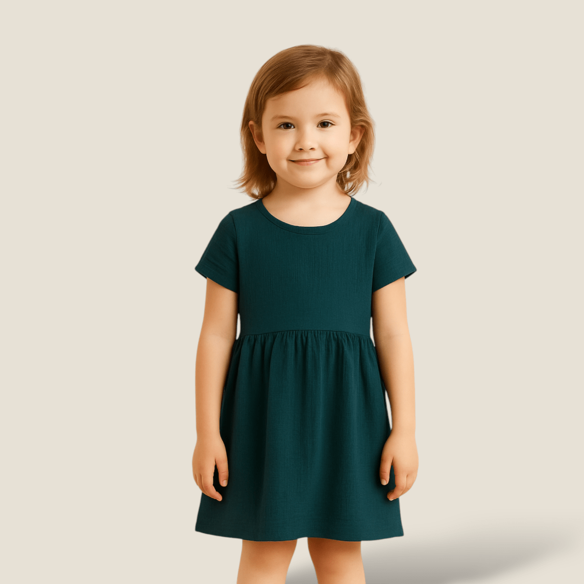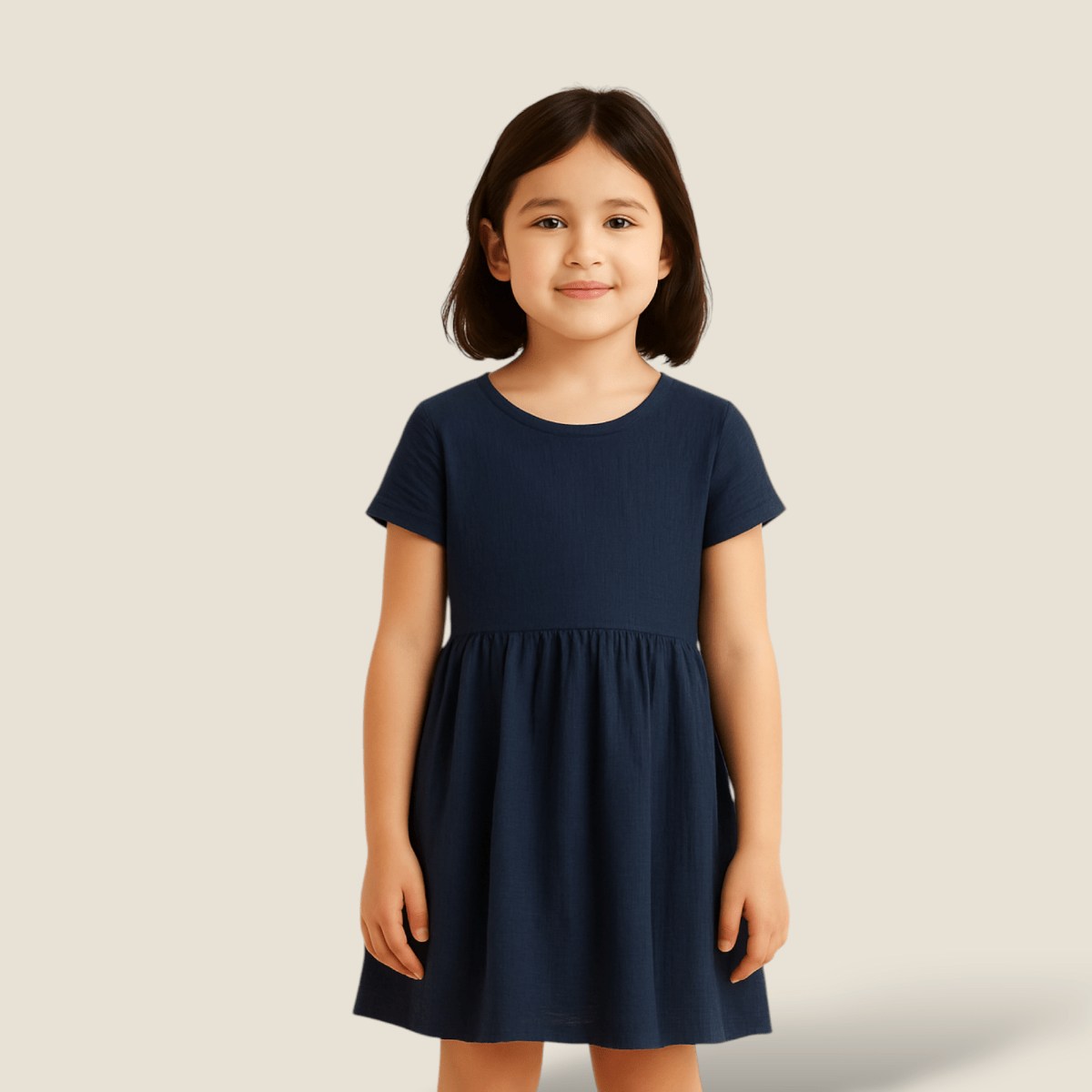 پیراهن چین دار کودک آبی نفتی 2 تا 11 سال