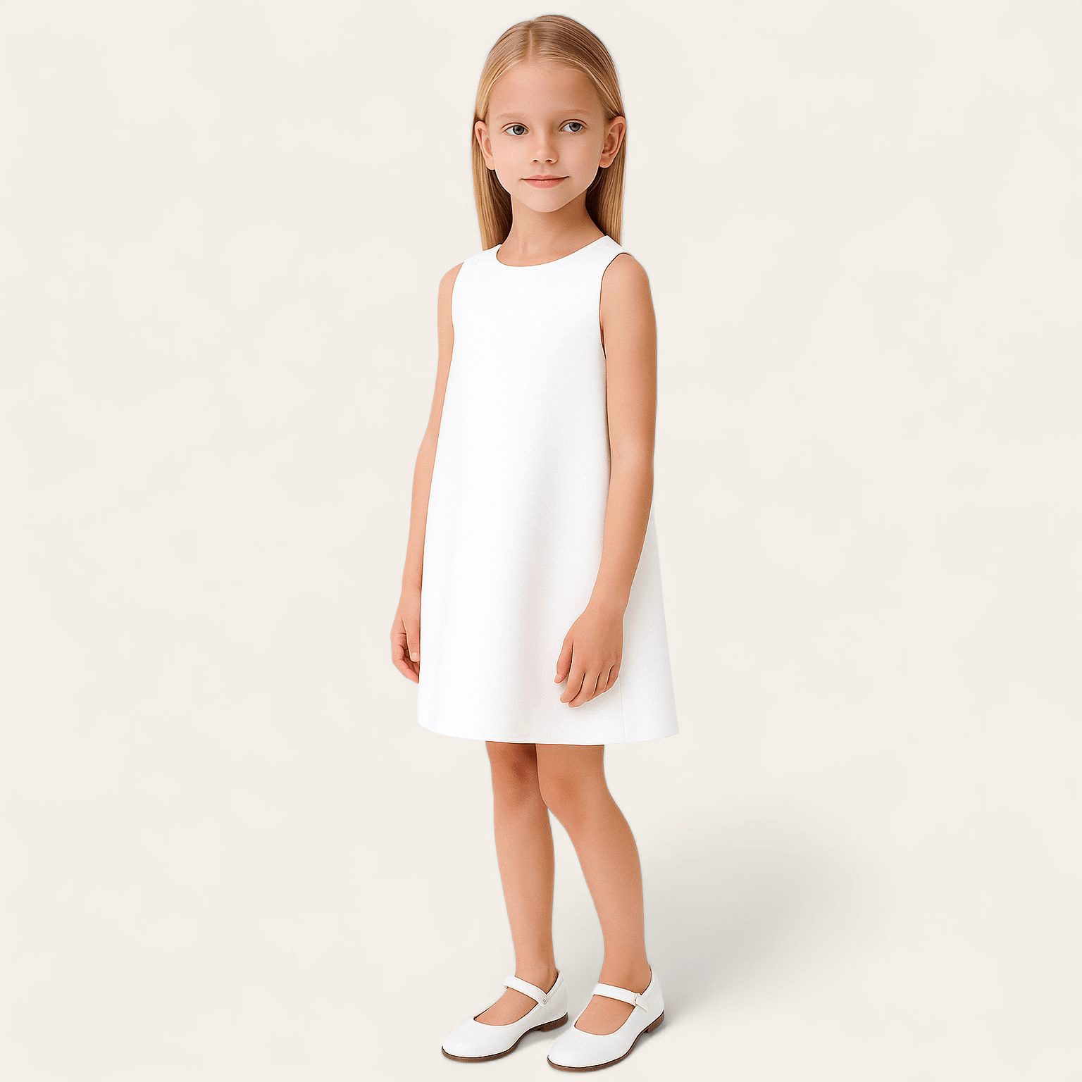 پیراهن کوتاه کودک کرپ یقه قایقی آستین حلقه ای صورتی سایز 2 تا 11 سال (رنگبندی موجود)