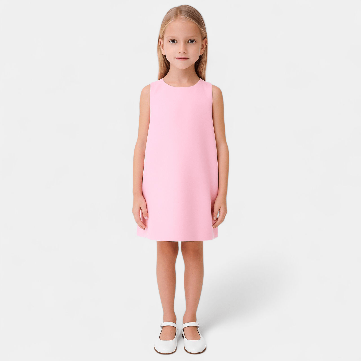 پیراهن کوتاه کودک کرپ یقه قایقی آستین حلقه ای صورتی سایز 2 تا 11 سال