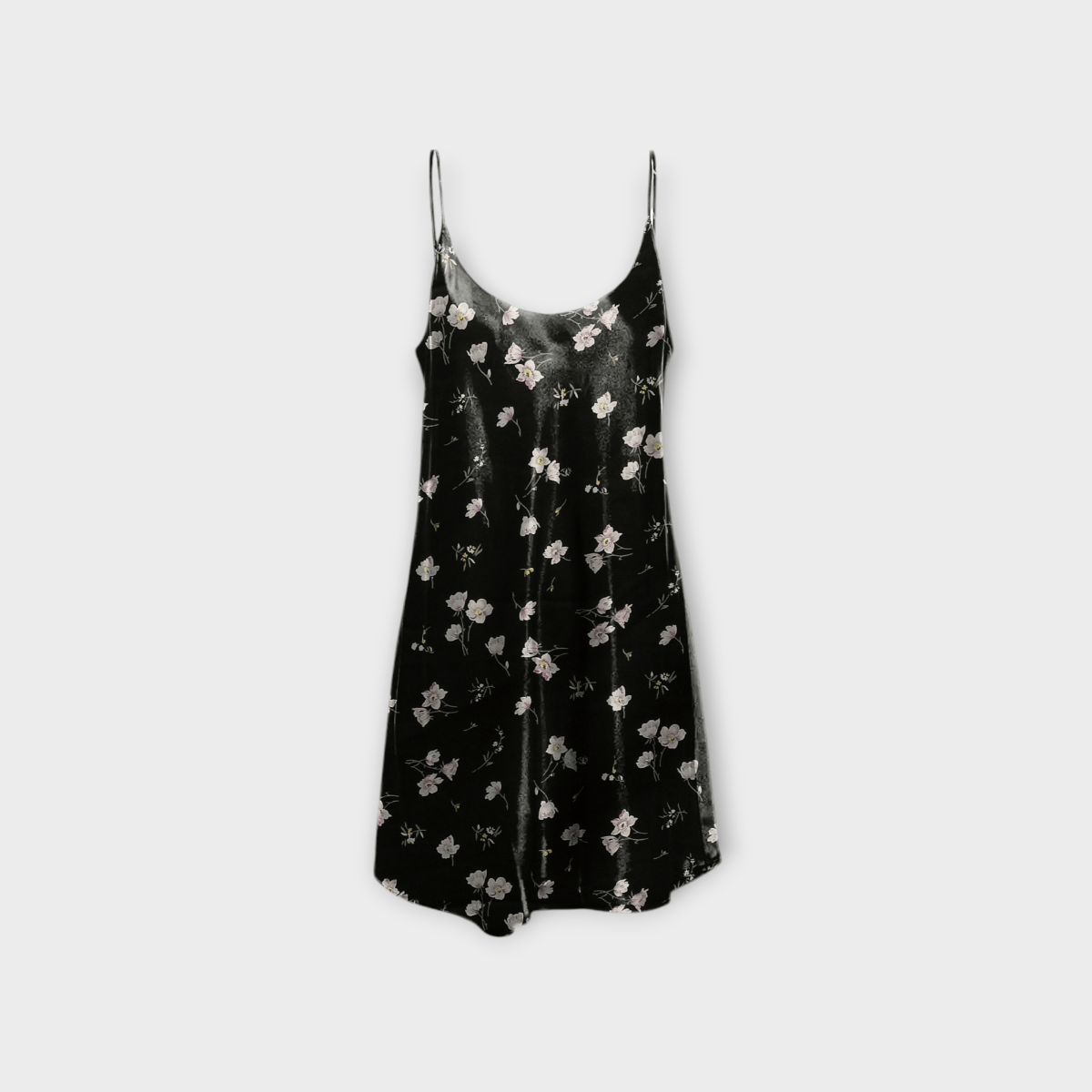 پیراهن کوتاه گلدار گل آناگالیس با زمینه مشکی بندی یقه گرد اسلپ کرپ نخ