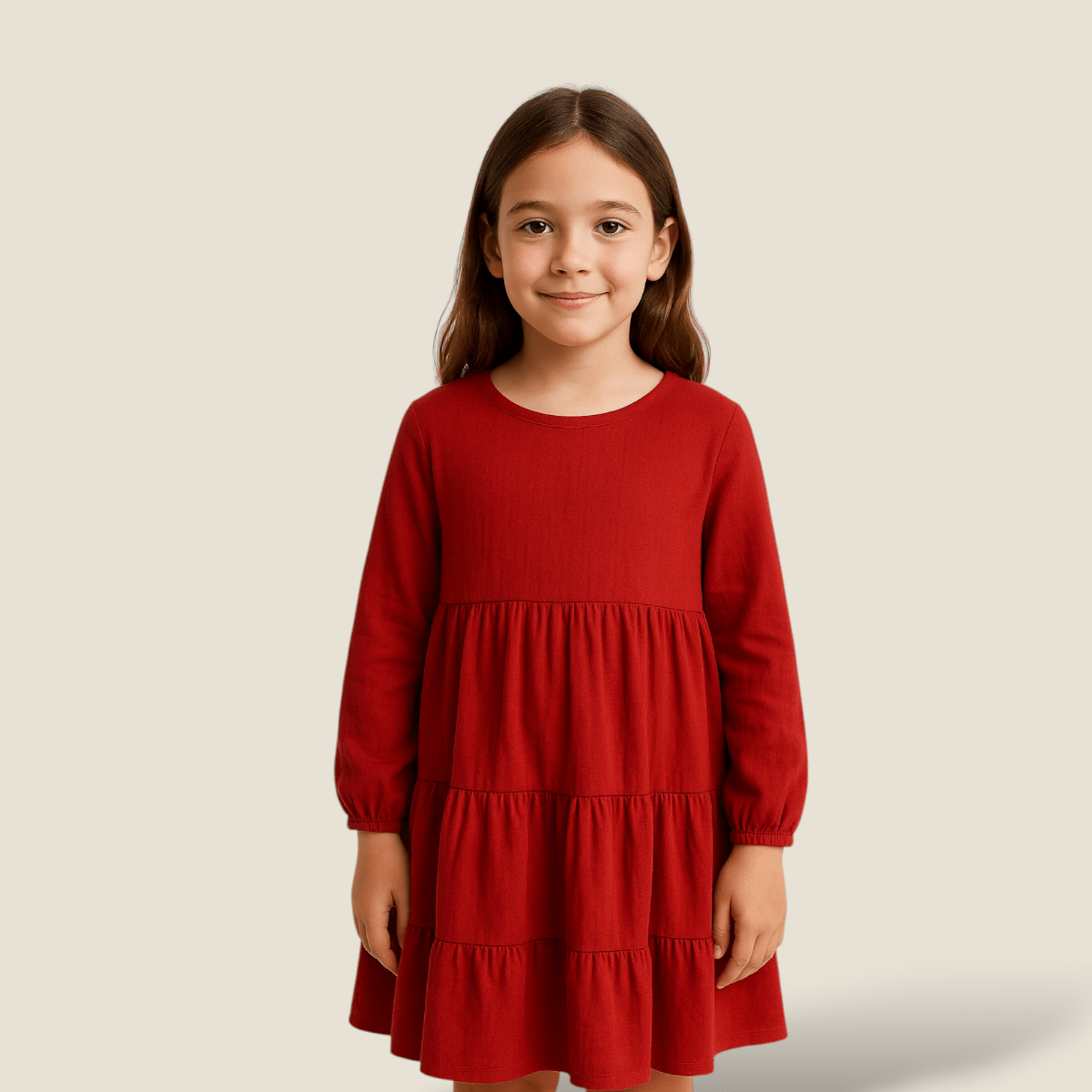 پیراهن کودک سه دامنه کوتاه آستین بلند نخی ابروبادی قرمز 2 تا 11 سال (رنگبندی موجود)