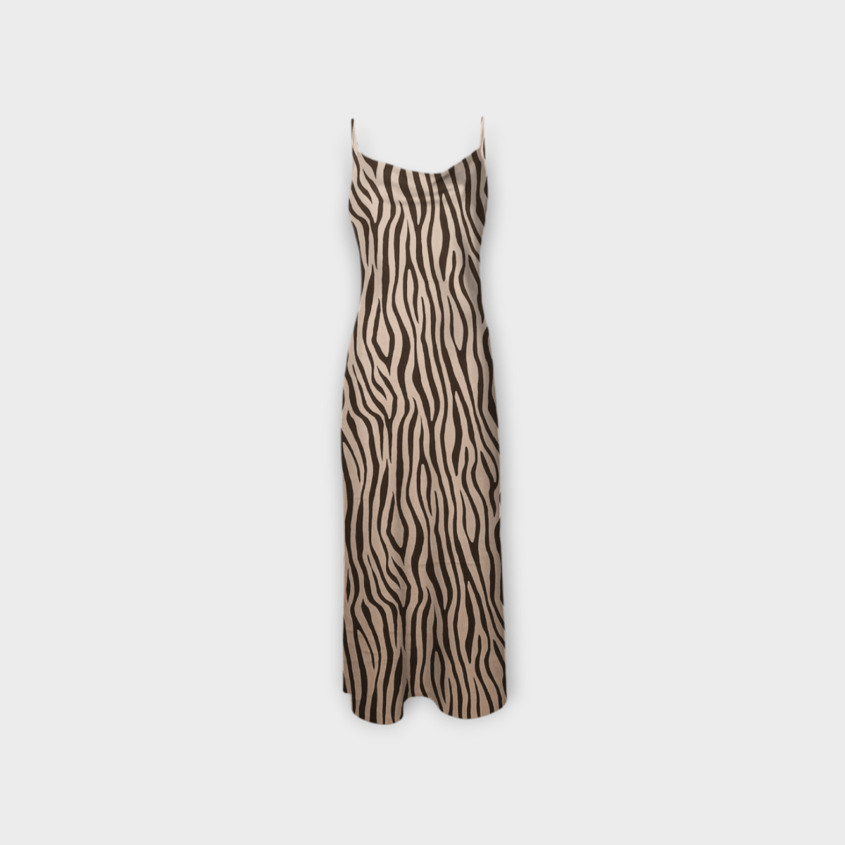 پیراهن یقه شل زبرا بلند بندی اسلپ کرپ نخ قد 125cm