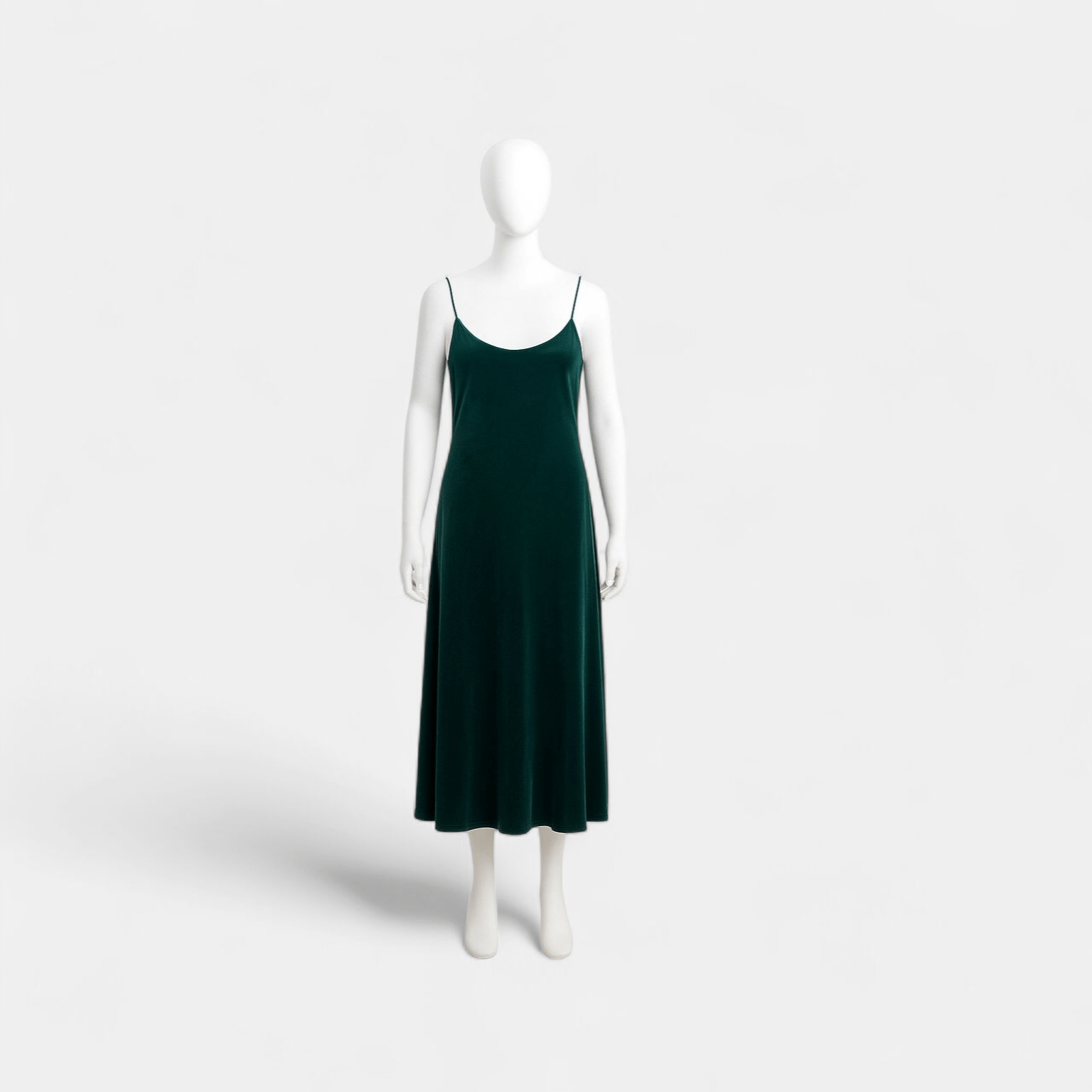 پیراهن یقه گرد بندی میدی مخمل سبز کله غازی سایز 32 تا 62 قد 115cm (رنگبندی موجود)