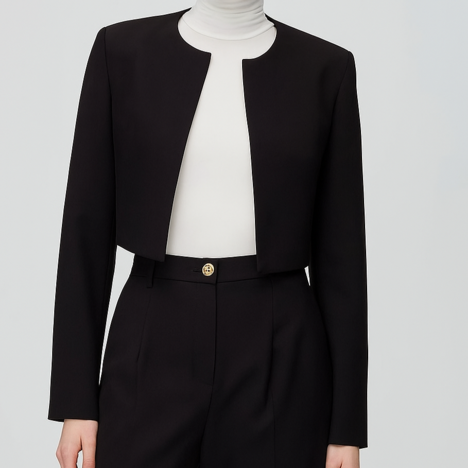 کت کراپ یقه گرد جلوباز کرپ مشکی