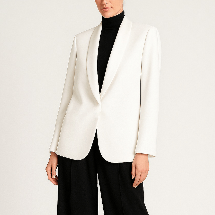 کت کرپ با یقه آرشال ساتن سفید