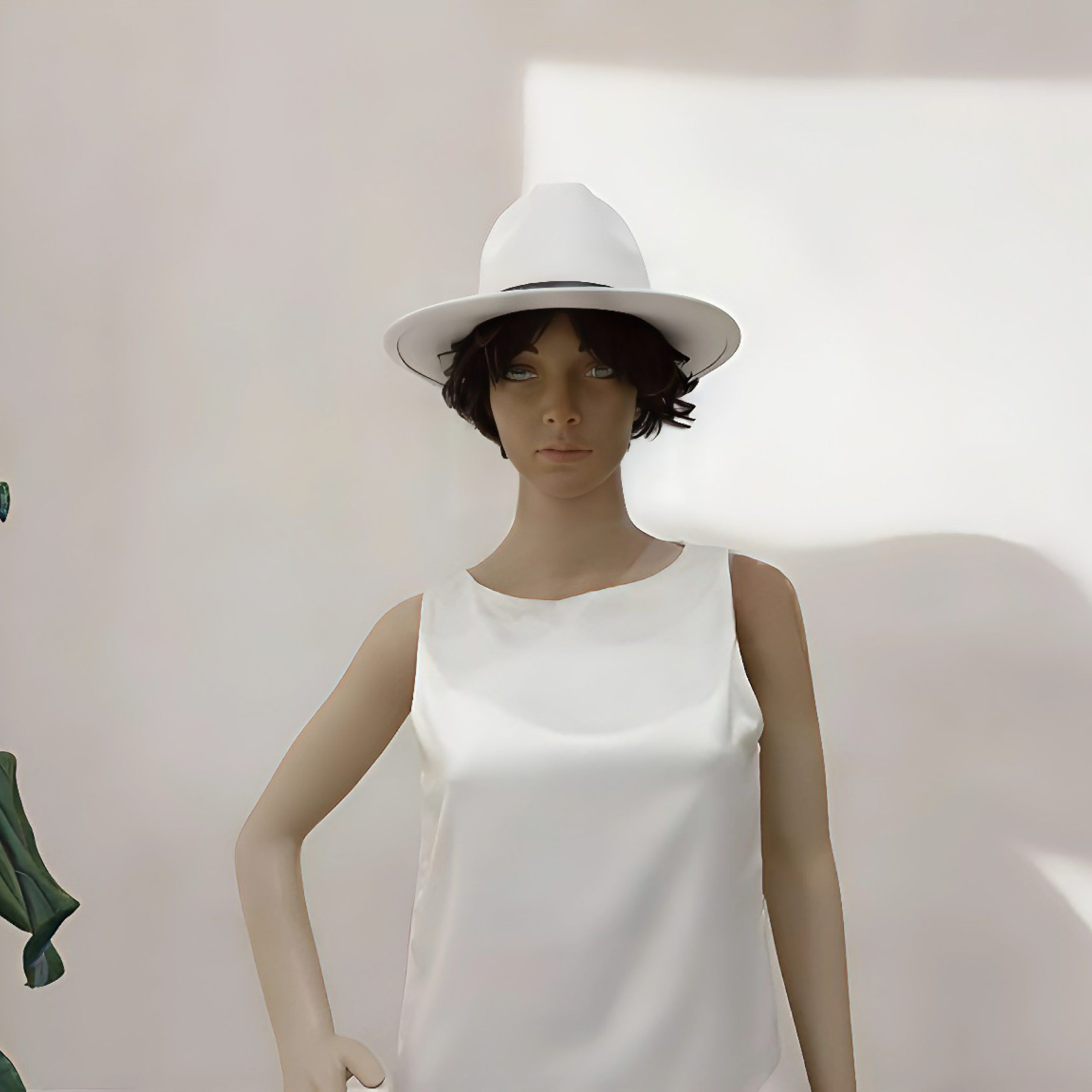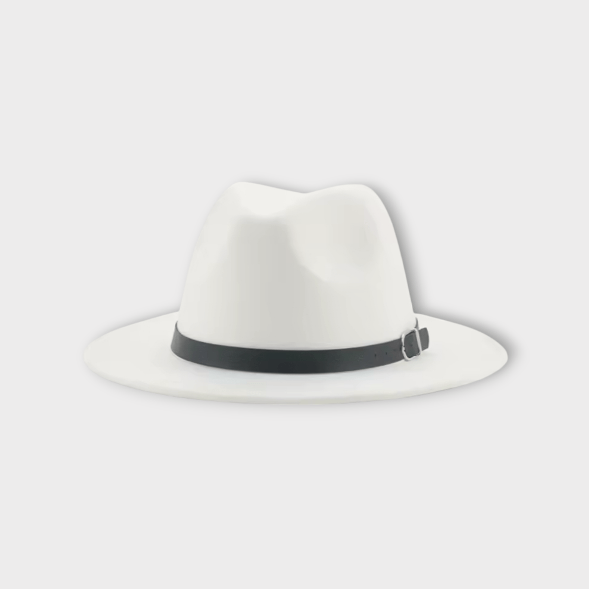 کلاه فدورا شاپو با بند چرم سفید الیاف طبیعی فشرده وارداتی