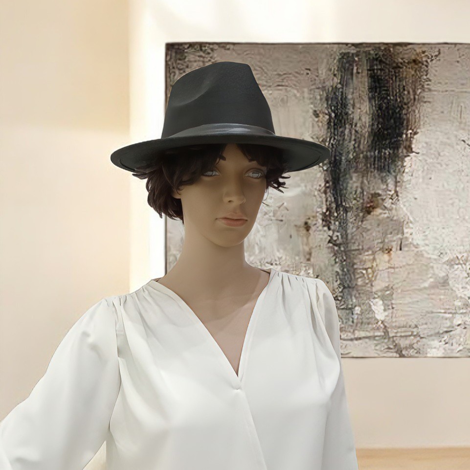 کلاه فدورا شاپو با بند چرم مشکی الیاف طبیعی فشرده وارداتی
